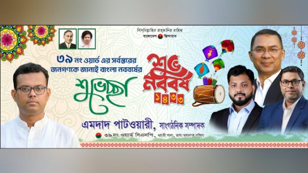 নববর্ষের শুভেচ্ছা জানিয়েছেন ৩৯ নং ওয়ার্ডের জনতার কাউন্সিলর প্রার্থী এমদাদ পাটওয়ারী নববর্ষের শুভেচ্ছা জানিয়েছেন ৩৯ নং ওয়ার্ডের জনতার কাউন্সিলর প্রার্থী এমদাদ পাটওয়ারী ৩৯ নং ওয়ার্ডের জনতার কাউন্সিলর প্রার্থী এমদাদ পাটওয়ারী দেশবাসীকে বাংলা নববর্ষের শুভেচ্ছা ও অভিনন্দন জানিয়েছেন। তিনি বলেন, নতুন