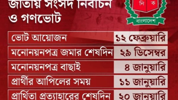🗳️ ঘোষিত হলো জাতীয় সংসদ নির্বাচন ও গণভোটের তফসিল মতিঝিল নিউজ ২৪ | বিশেষ প্রতিবেদন বাংলাদেশের রাজনৈতিক অঙ্গনে বহুল প্রতীক্ষিত জাতীয় সংসদ নির্বাচন ও গণভোটের তফসিল আনুষ্ঠানিকভাবে ঘোষণা করেছে নির্বাচন