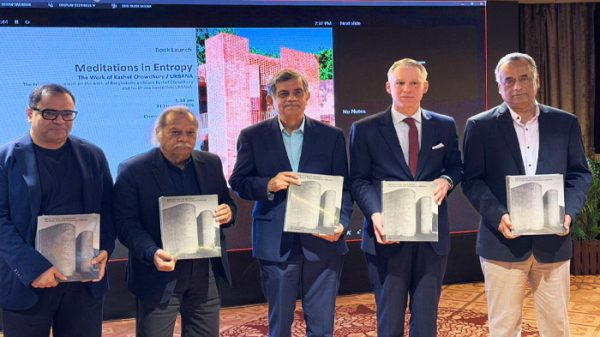 মতিঝিলনিউজ প্রতিবেদক : আগা খান পুরস্কারপ্রাপ্ত আন্তর্জাতিক খ্যাতিসম্পন্ন বাংলাদেশি স্থপতি কাশেফ মাহবুব চৌধুরীর নতুন মনোগ্রাফ Meditations in Entropy: The Work of Kashef Chowdhury / URBANA–এর গ্রন্থ উন্মোচন অনুষ্ঠিত হয়েছে। অনুষ্ঠানে